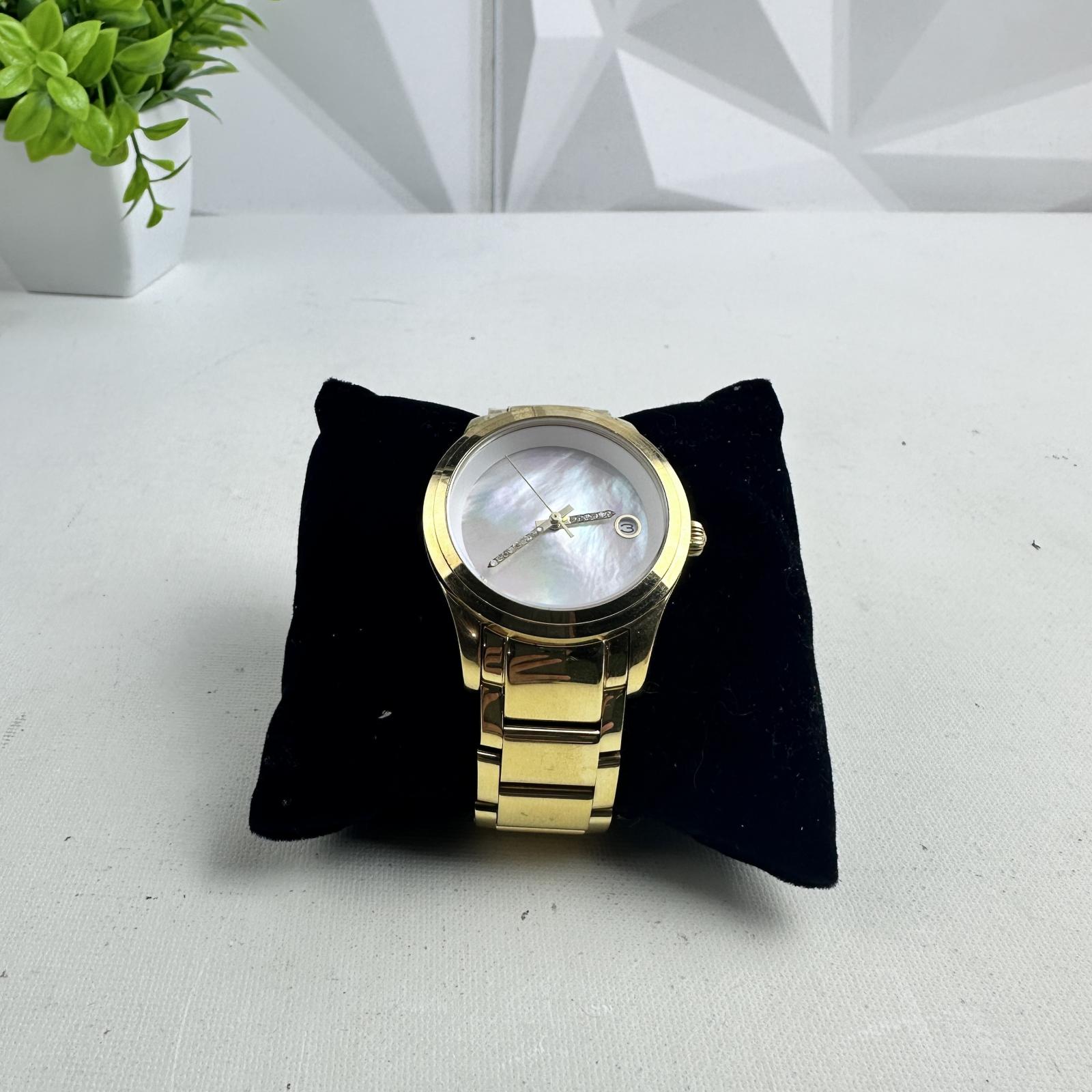 Featuring a 38mm gold-tone stainless steel case and bracelet, this automatic timepiece showcases a stunning mother of pearl dial accented with 0.06 carats of genuine diamonds. Protected by a Flame Fusion crystal and water-resistant up to 100 meters, it combines beauty with durability.