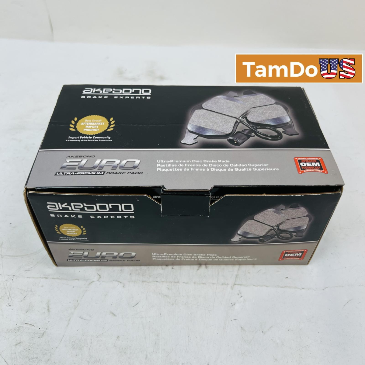 This set of Akebono EURO Ultra-Premium Brake Pads (Part No. EUR1692) is new and designed for European vehicles. They offer smooth braking and low dust.