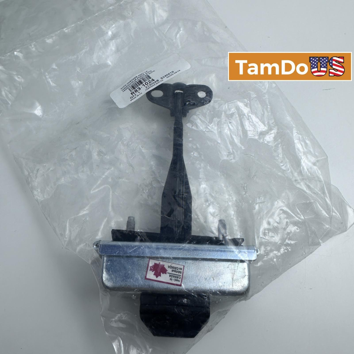 This is a new Auto Checker Assembly, Left Hand (LH), part number R83-1024. It limits the opening angle of vehicle doors, preventing damage.