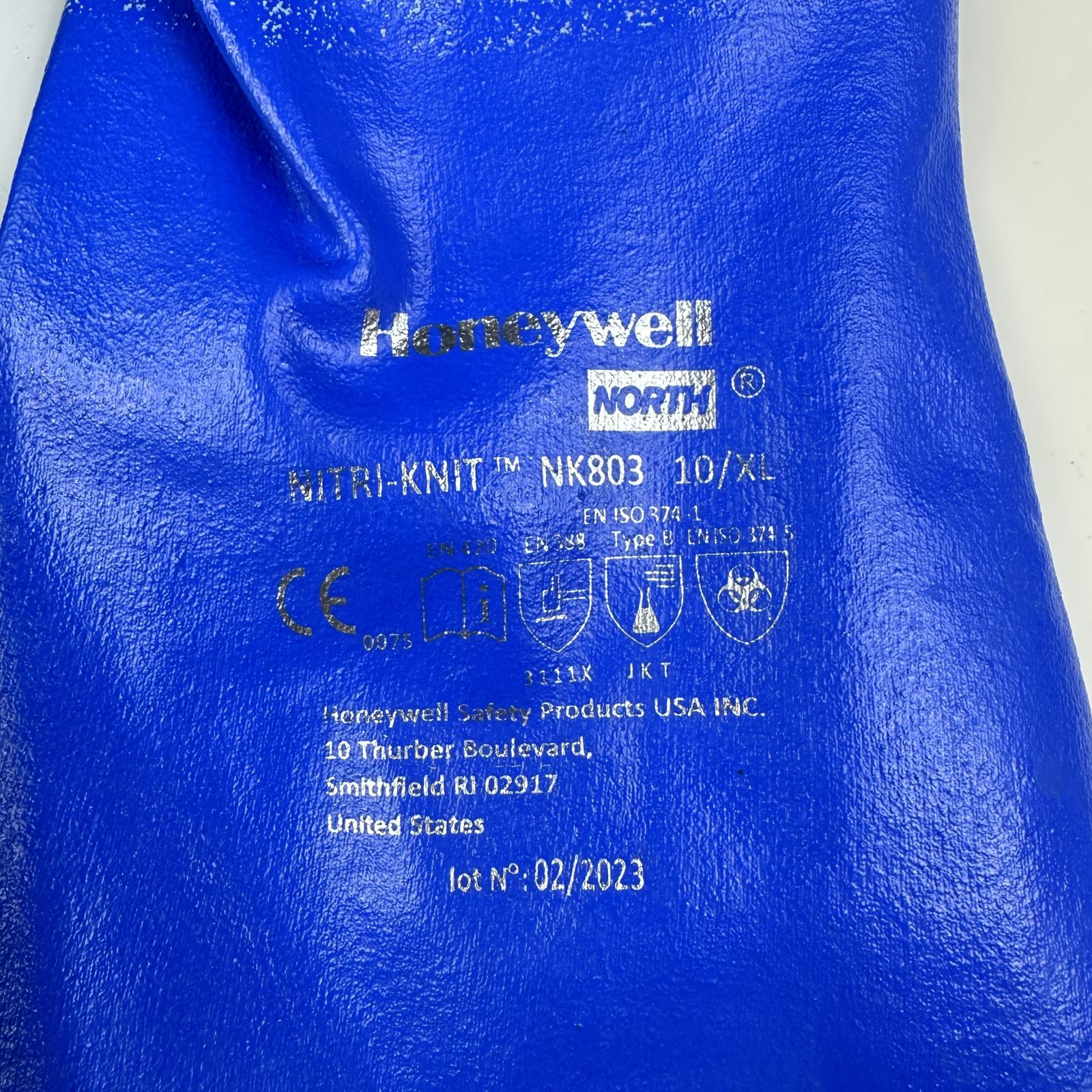 This is a 5 pack of Honeywell North Nitric-Knit NK803 gloves in size 10/XL. They are in new open box condition, perfect for safety needs.