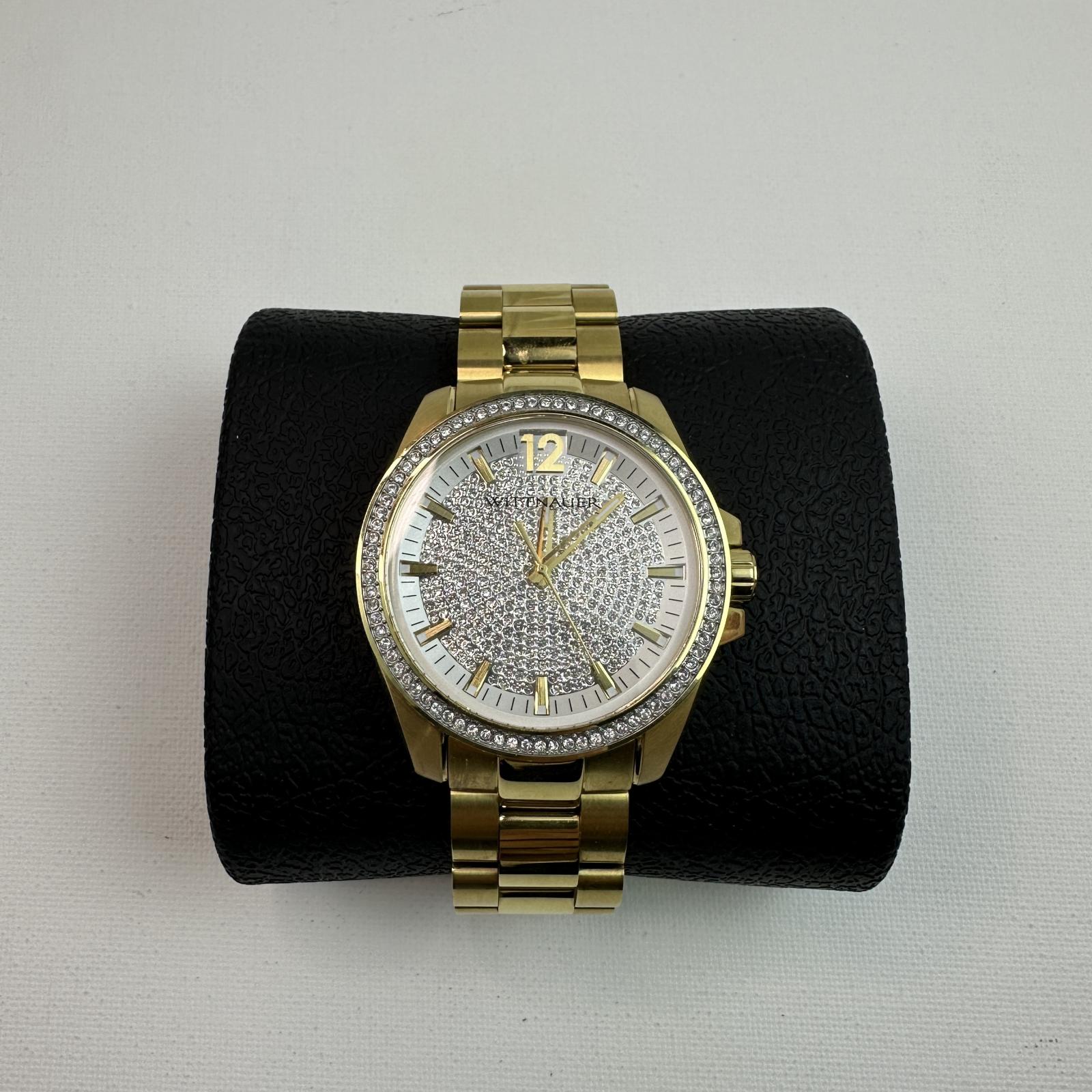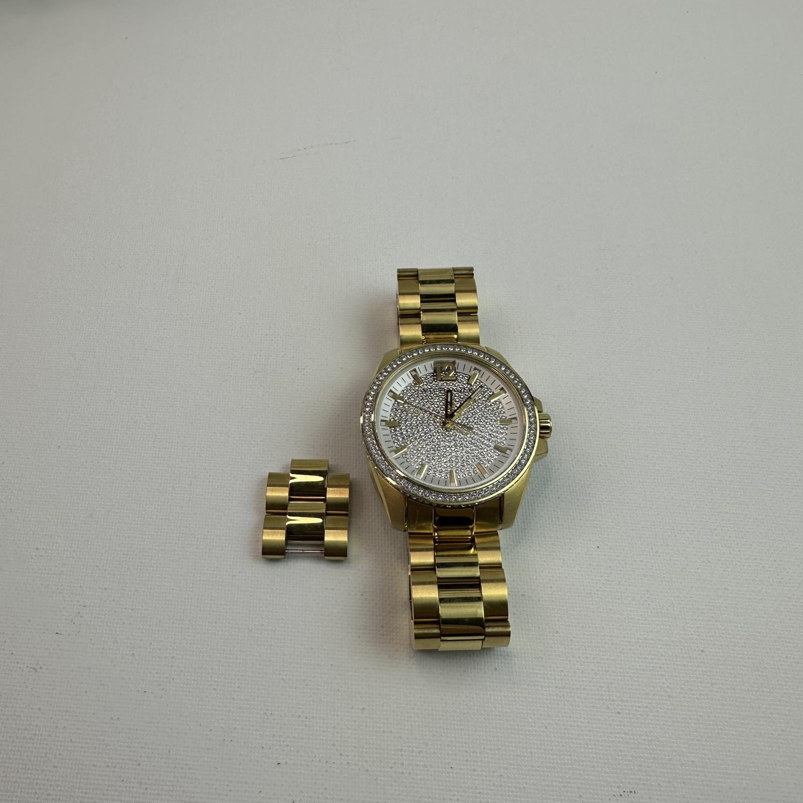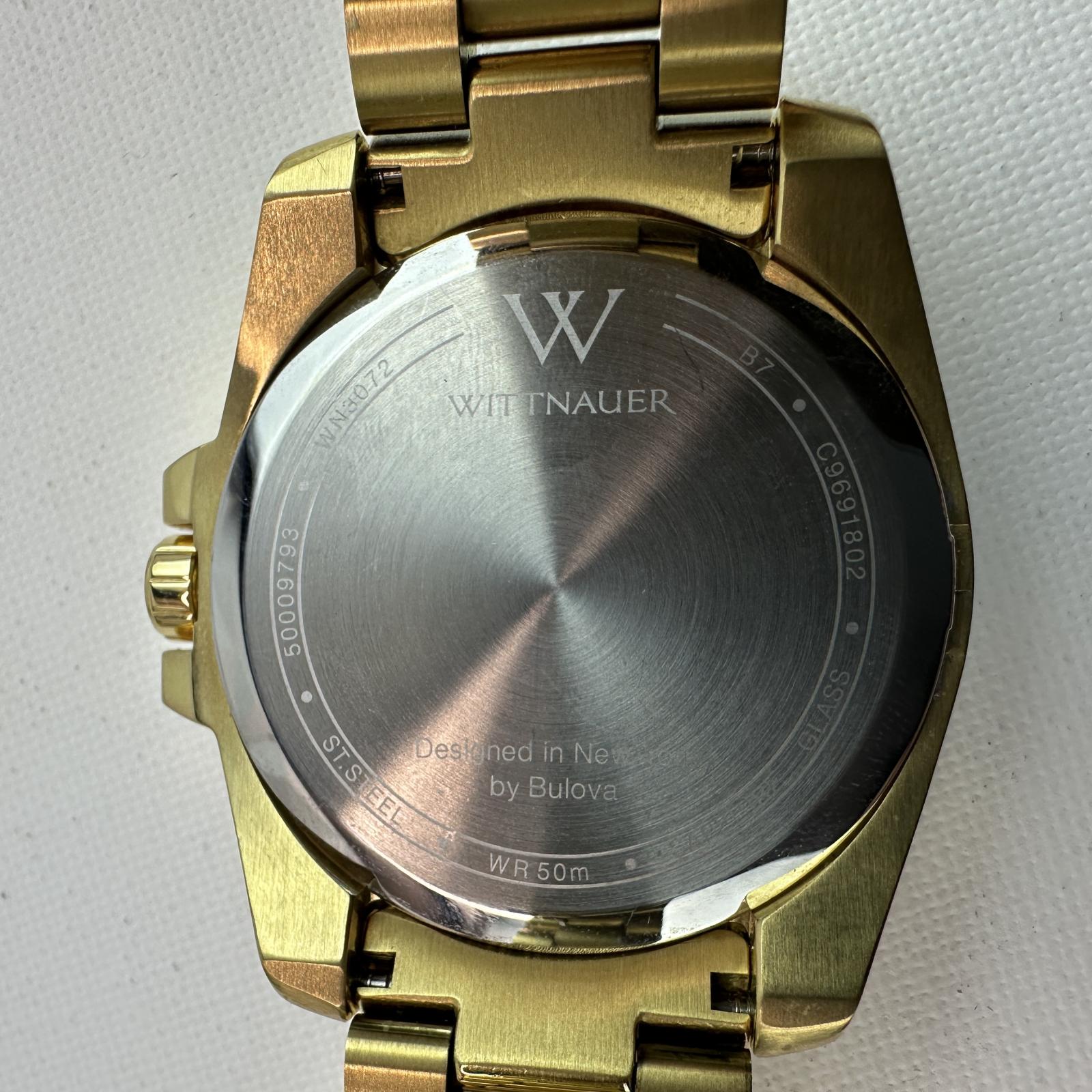 with minor signs of use. Add bold luxury to your wrist with the Wittnauer WN3072 Men's Watch , featuring a 44mm gold-tone stainless steel case and a fully pavé crystal-accented dial and bezel .