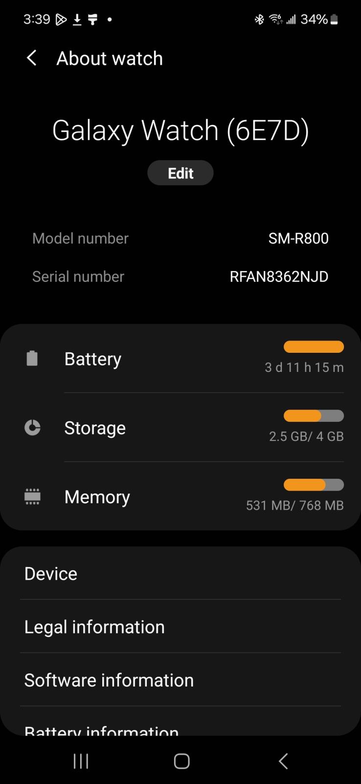 Samsung Galaxy Watch SM-R800 AMOLED Smartwatch 46mm Stainless Steel
