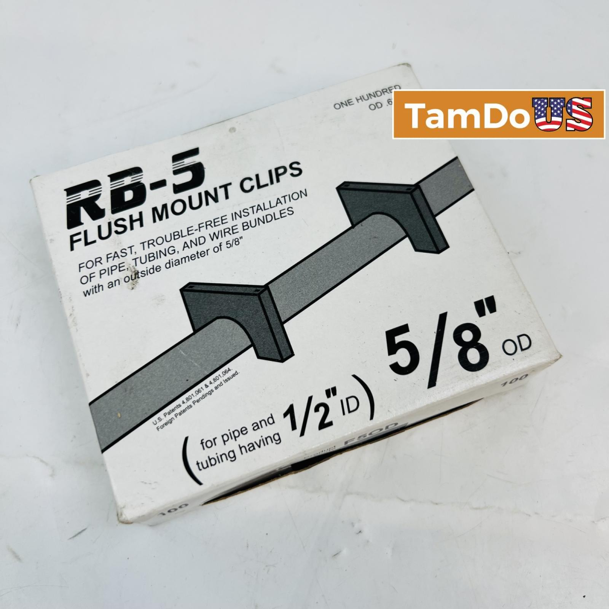 This listing is for a box of 100 RB-5 Flush Mount Clips in new condition. Designed for 1/2" ID and 5/8" OD pipe, they ensure secure mounting.