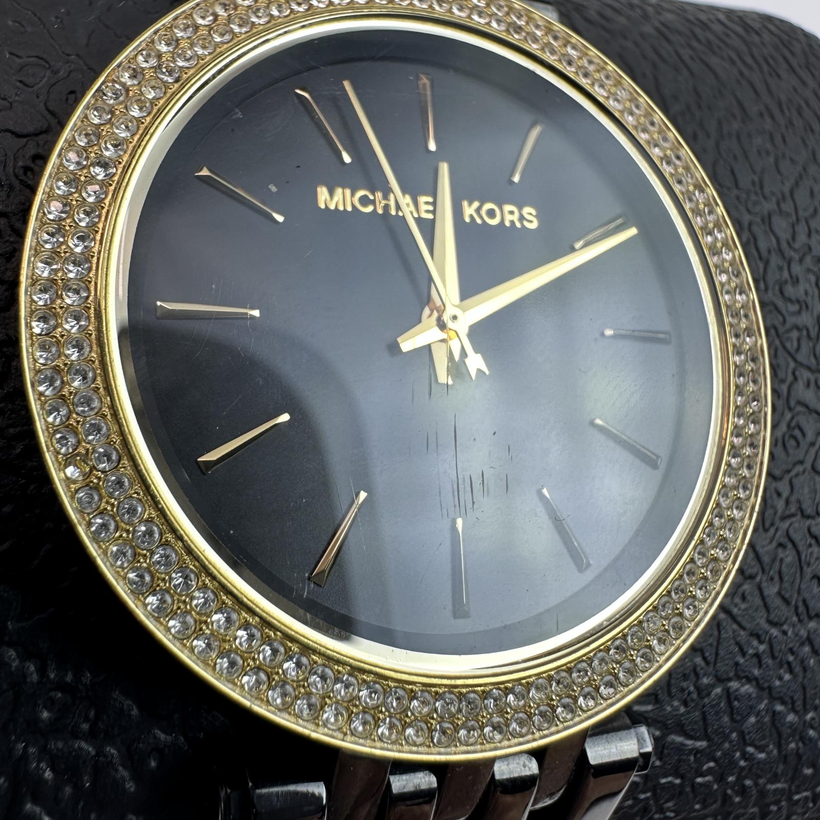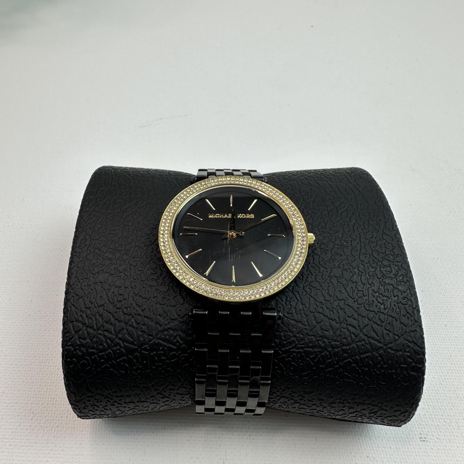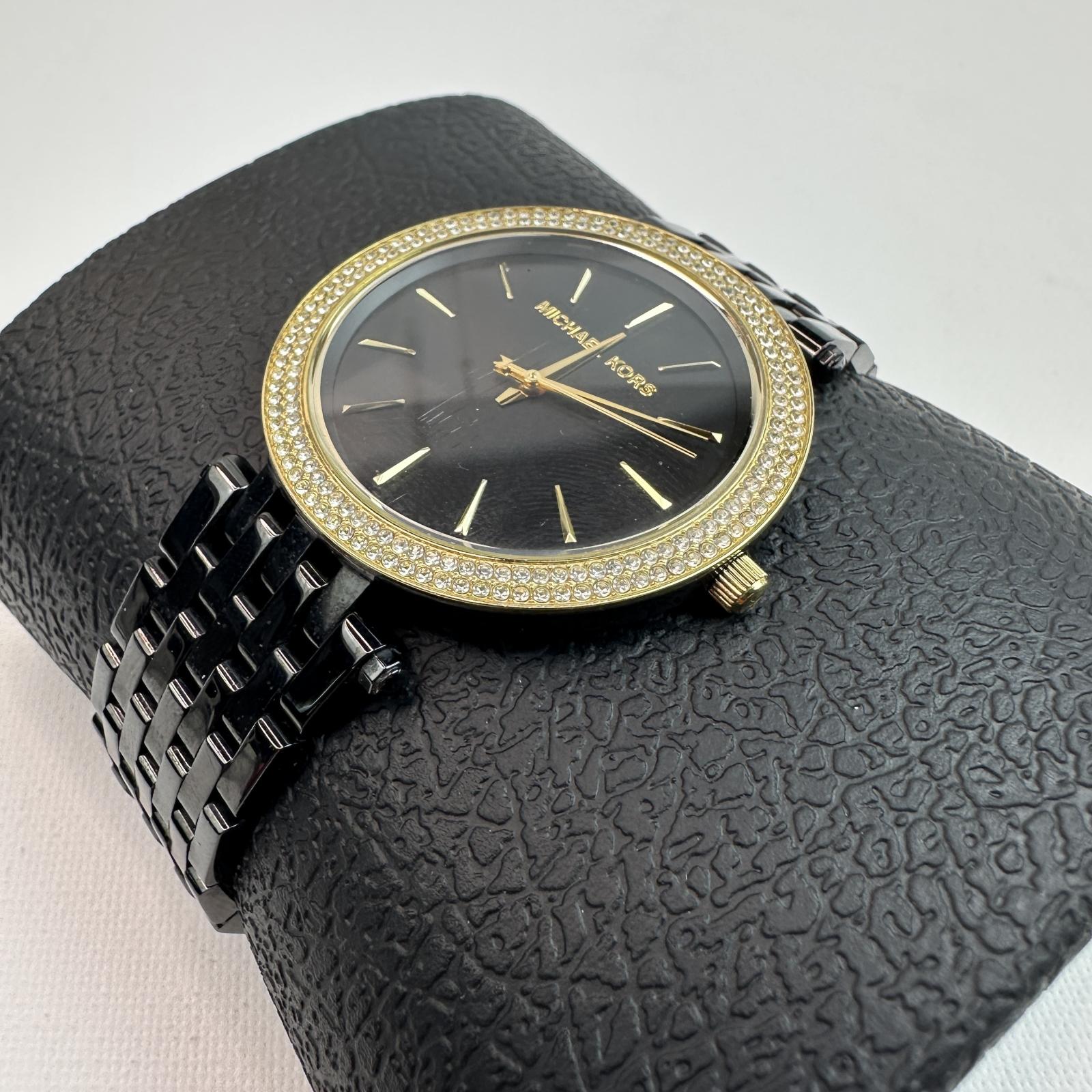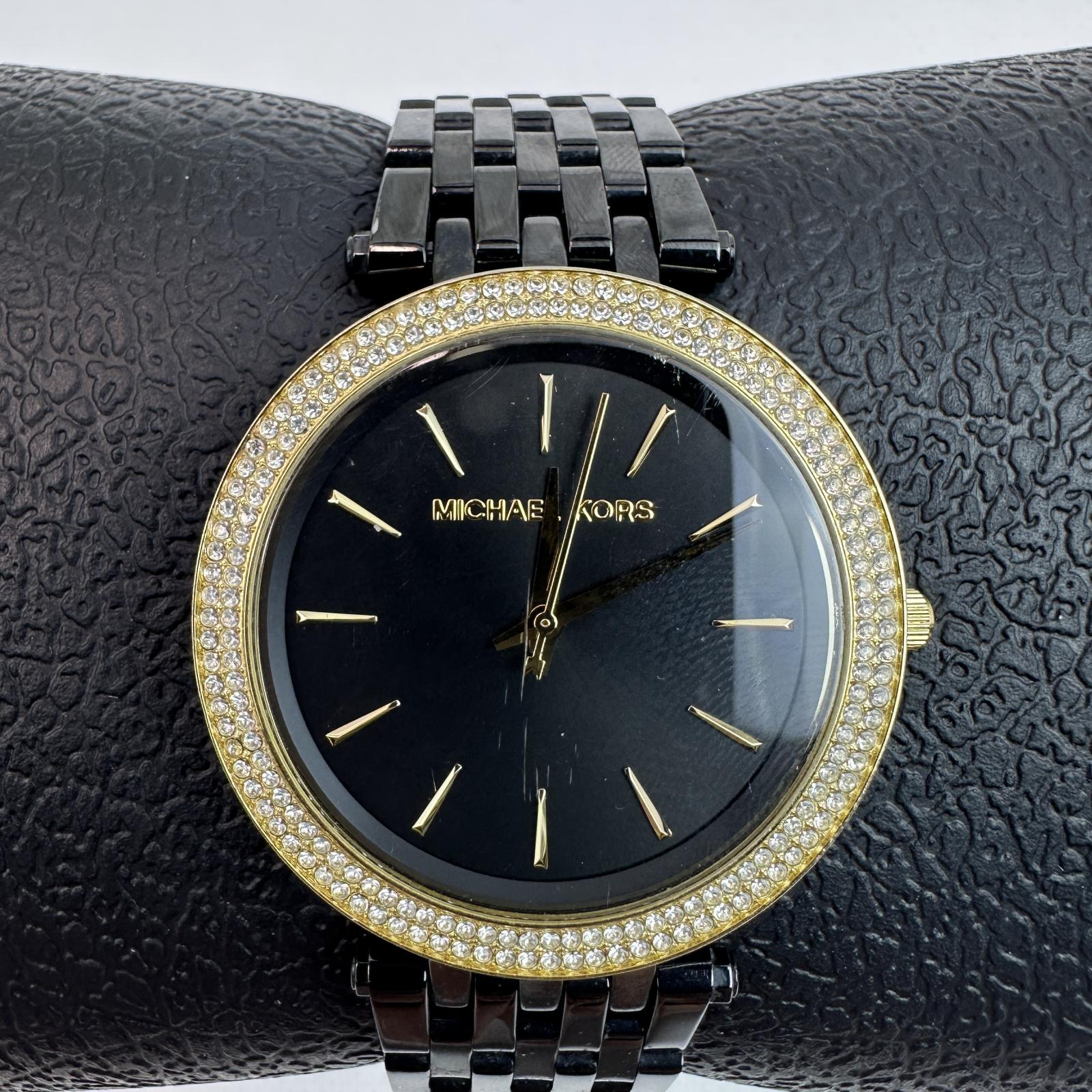 , may have signs of wear/surface marks. Add sparkle and sophistication to your wrist with the Michael Kors Darci MK3322 Women's Watch , featuring a 39mm black stainless steel case and bracelet , paired with a crystal-embellished bezel for a glamorous finish.