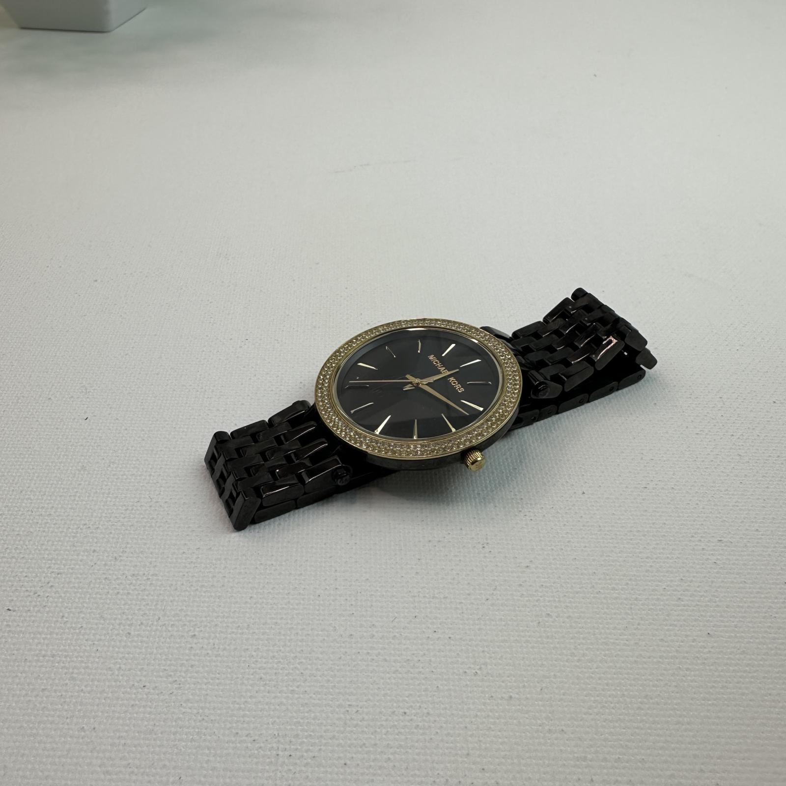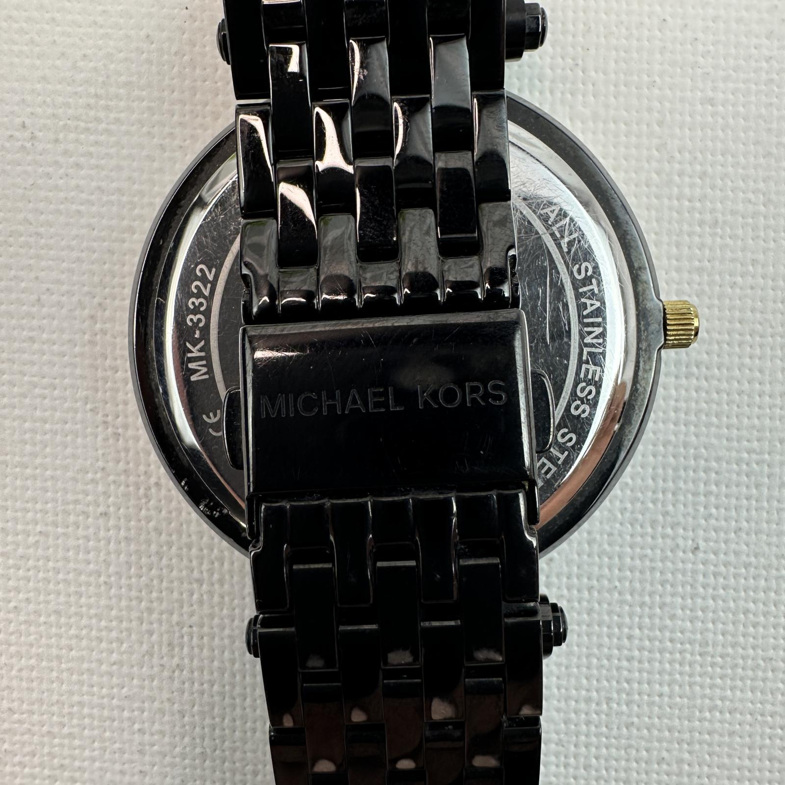 With 50M water resistance , it’s suitable for daily wear and light water exposure. Key Features: - Model : MK3322 - Retail Price : $250 - Case Size : 39mm - Dial : Black with silver-tone hands - Band : Black stainless steel - Bezel : Crystal-embellished - Movement : Quartz - Water Resistance : 50 meters - Crystal : Mineral - Style : Dress / Fashion - Extras : Gift box, 2-year warranty This Darci timepiece is perfect for those who love understated glamour and timeless design.