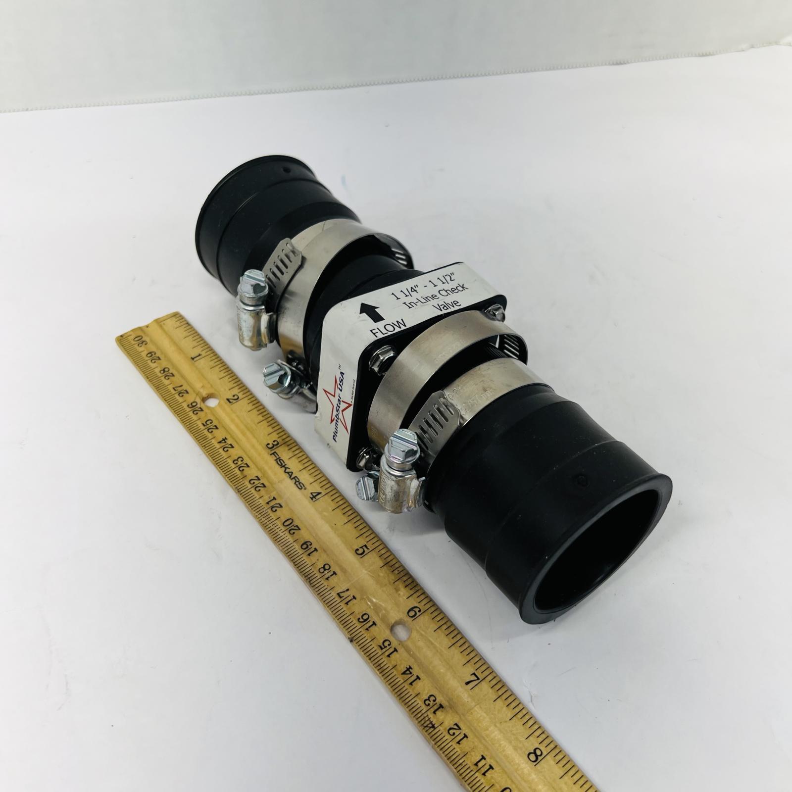 This lot includes 2 PlumbStar USA in-line check valves, suitable for 1 1/4" to 1 1/2" pipes. Both are in new condition and ready for use.