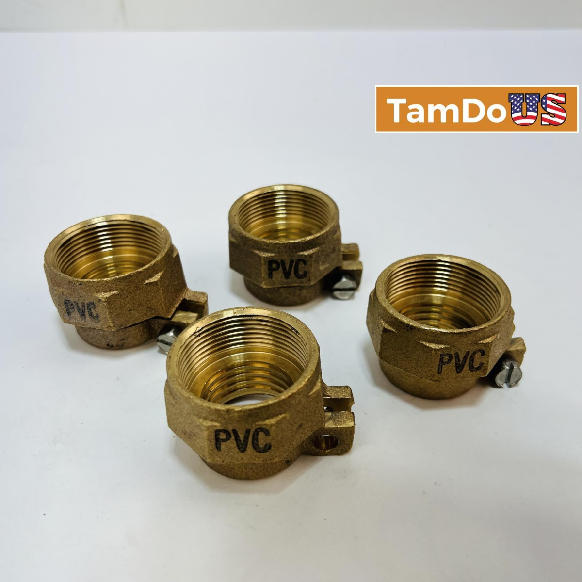 This 4-pack of brass PVC female thread adapter clamp fittings is new and designed for secure plumbing connections. Durable and corrosion-resistant, they ensure leak-free performance.